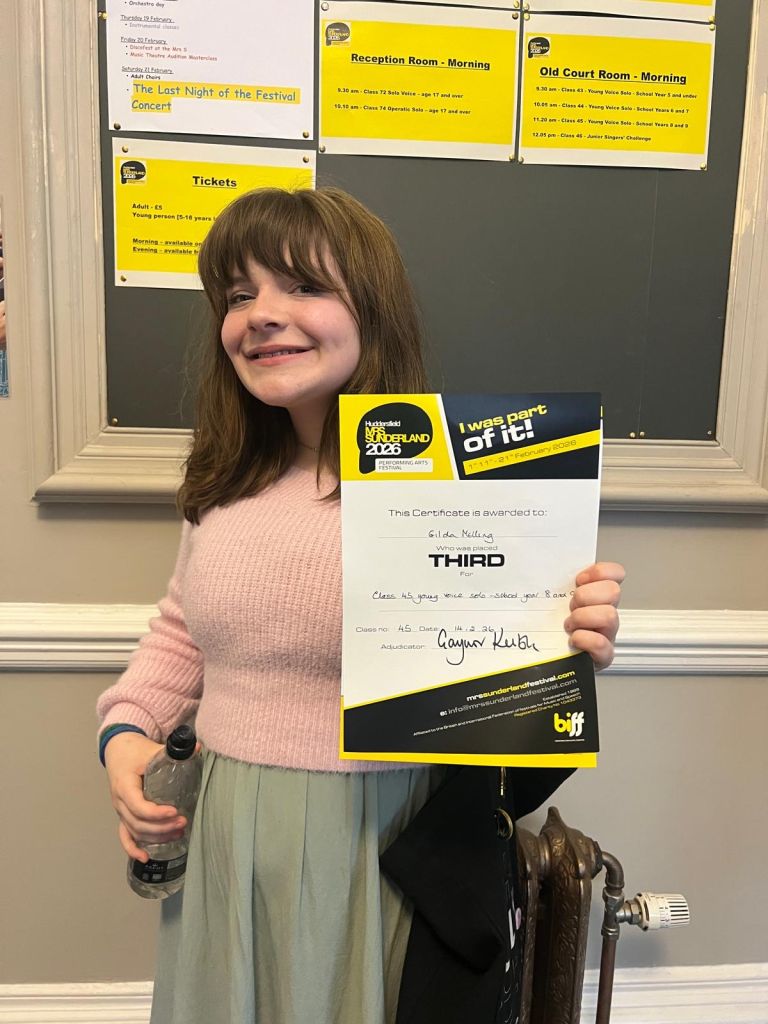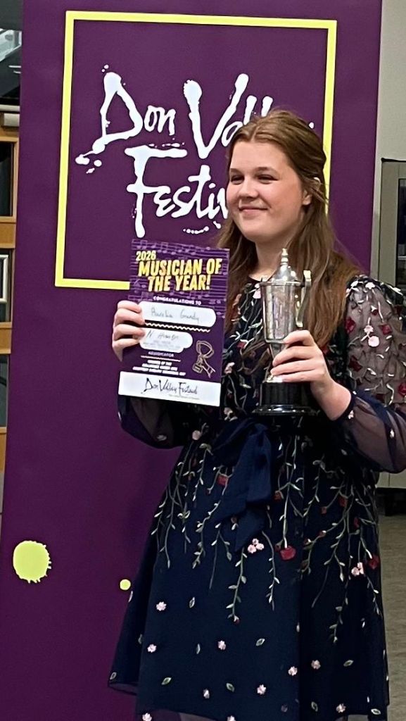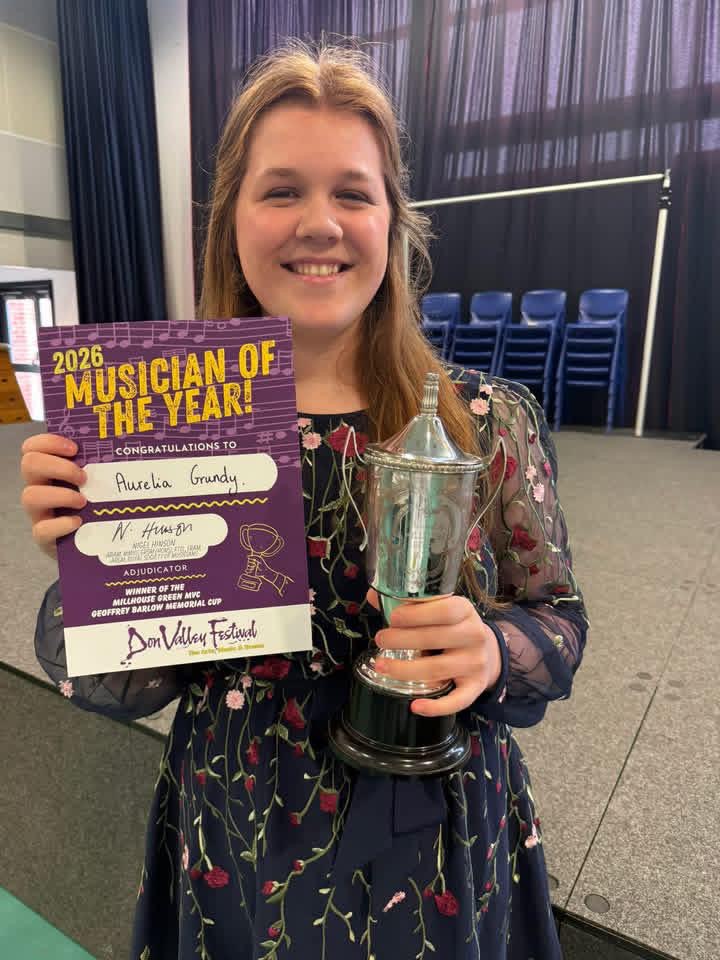 Aurelia Grundy performed in the Don Valley Festival this March. She sung in 7 classes coming away with six 1st places and a 2nd. Aurelia then sung in, and won the Musician of the Year 2026. We are so proud of you Aurelia. You always perform with such passion and professionalism.