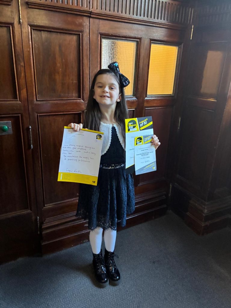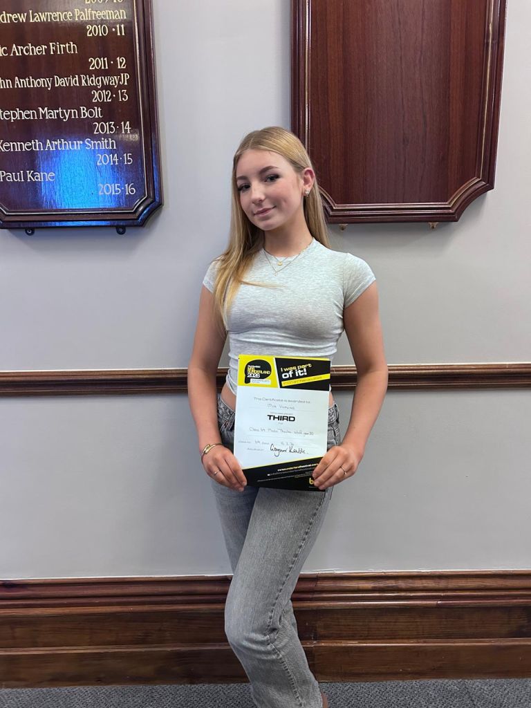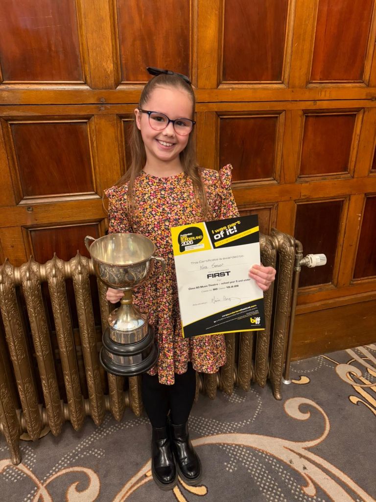 ‘Evie Rose Owen competed in the talent competition West End Calling, gaining a spot in their grand final on the 27th May in the West End. Evie won the Vocal Performance Award. We are so very proud of you Evie! Well done 🌟’