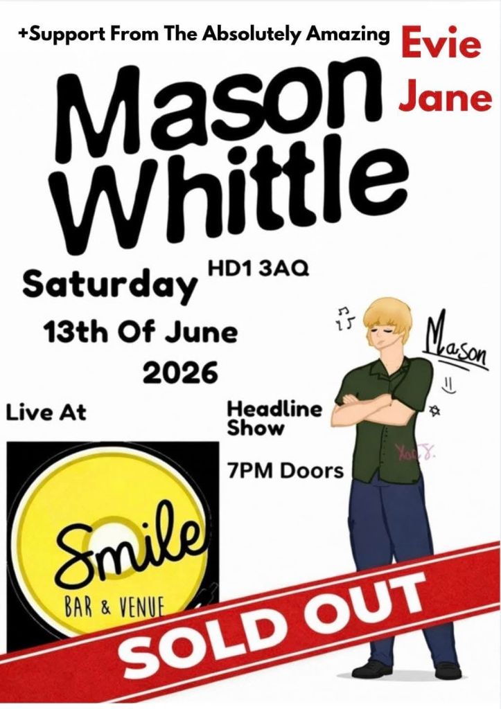 Evie Donaldson – has been gigging all over Huddersfield. She is about to perform in the Smile Bar in Huddersfield with Mason Whittle. This will be Evie’s big support act debut. We are so proud of you.
