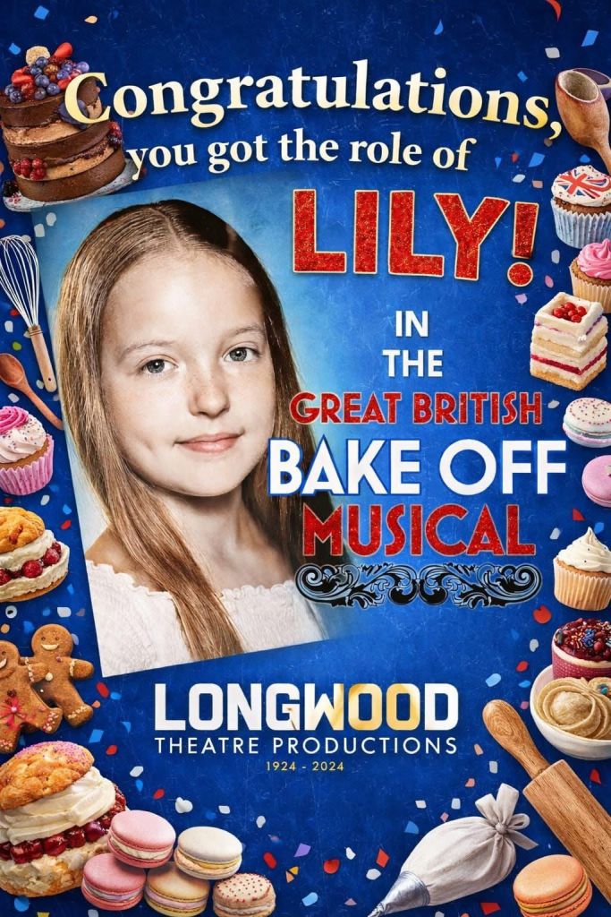 Poppy Greenwood – has been cast as ‘Lily’ in Longwood Theatre Productions ‘The Great British Bakeoff’ the Musical. We can’t wait to go and see you Poppy.
